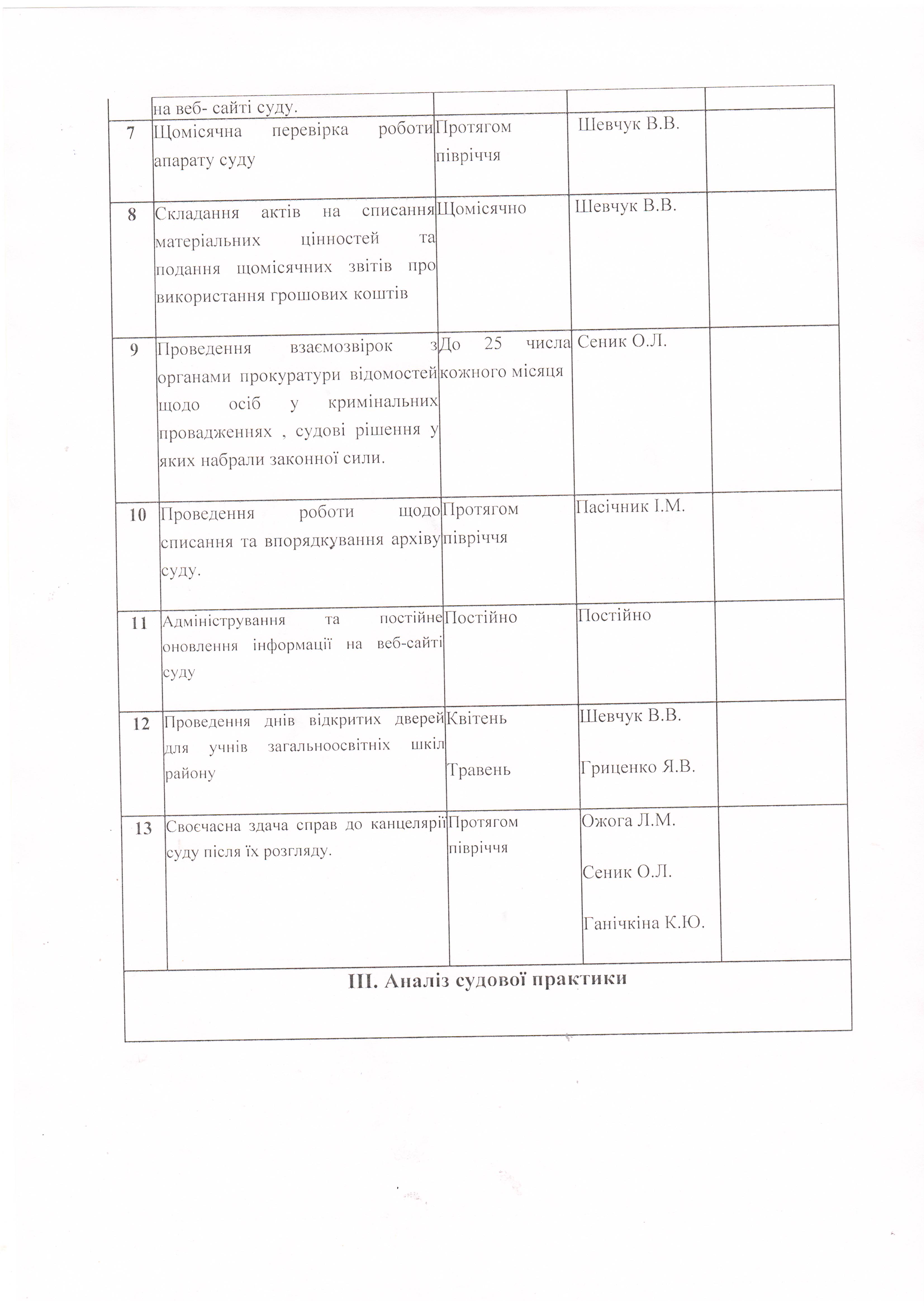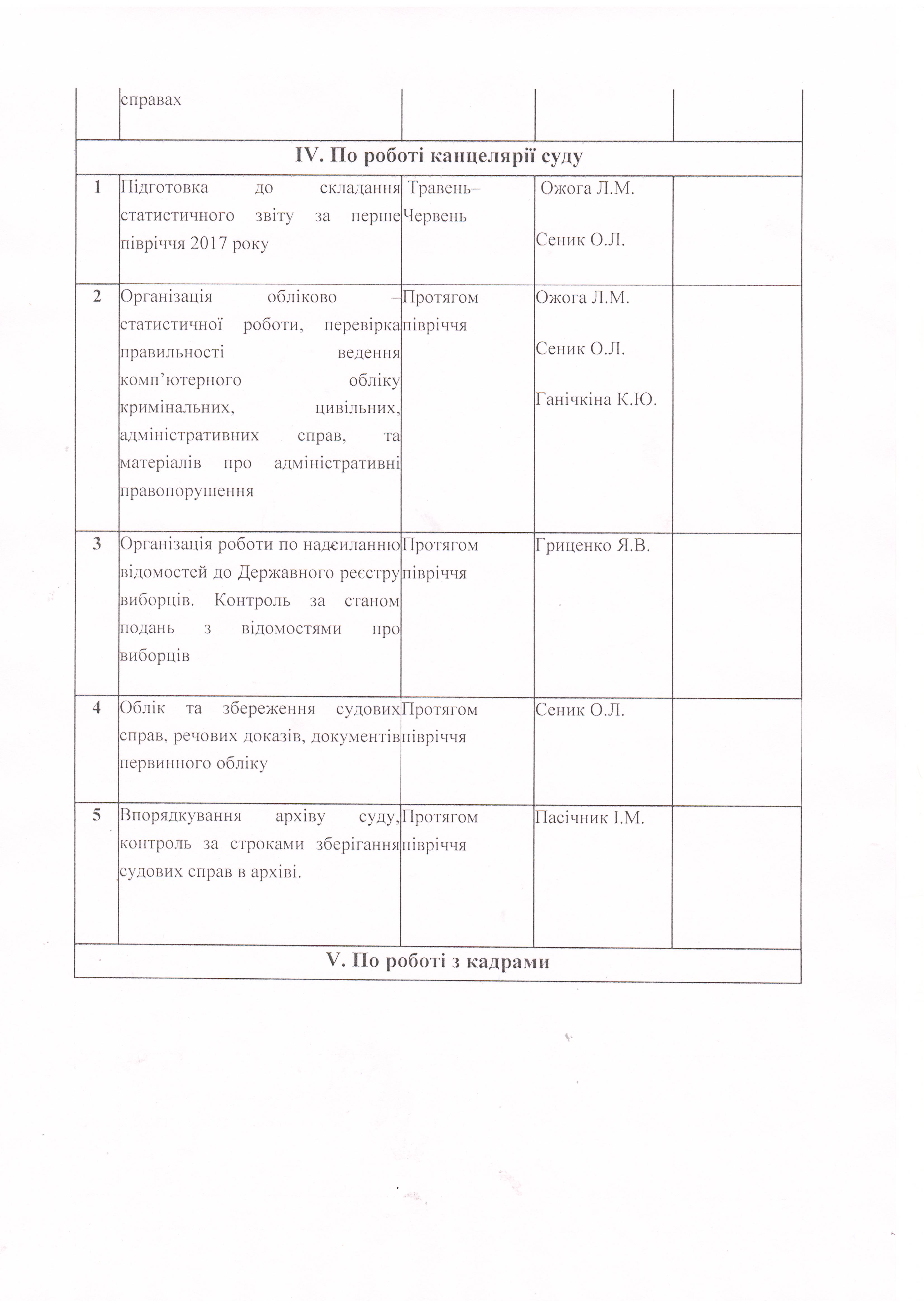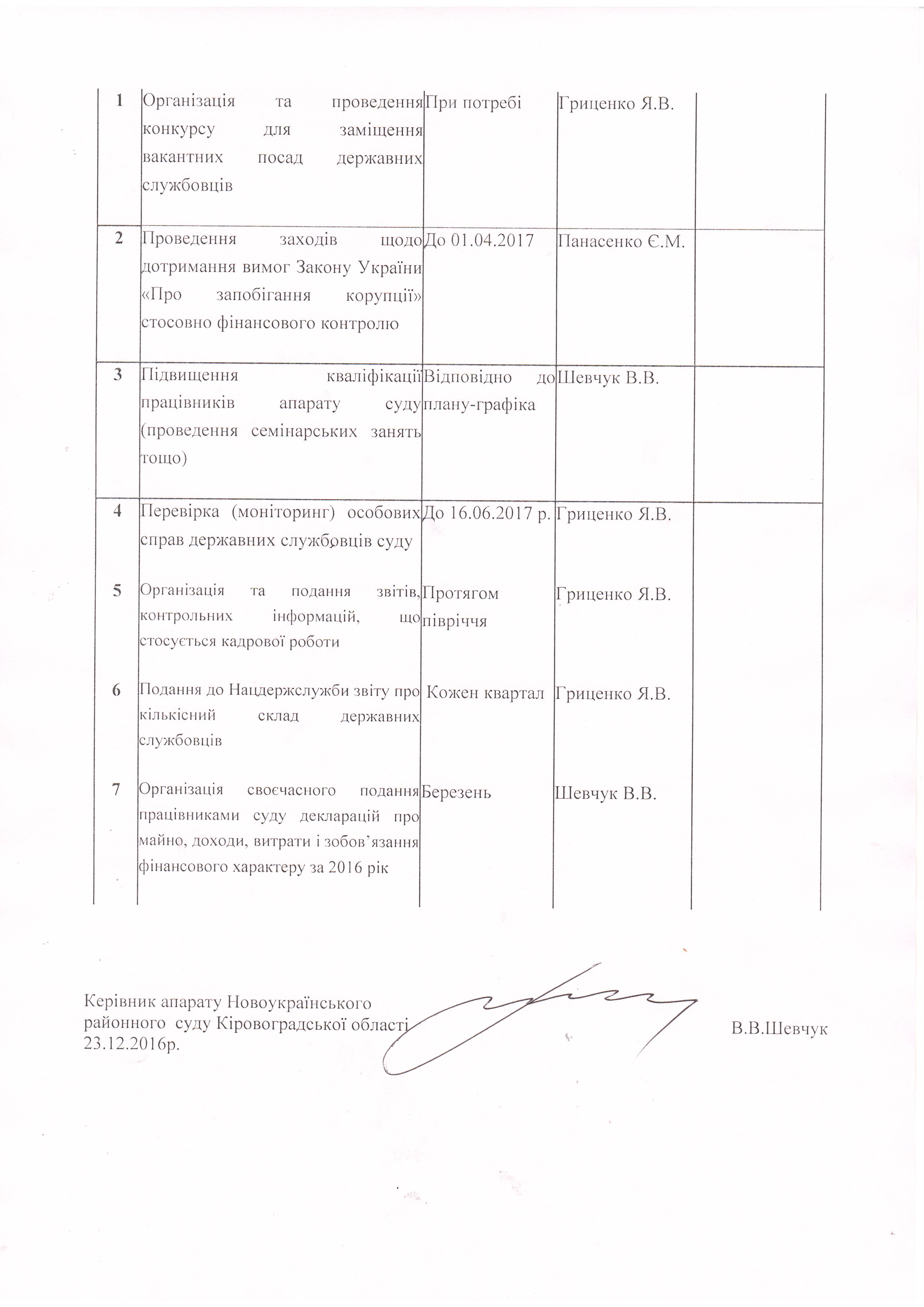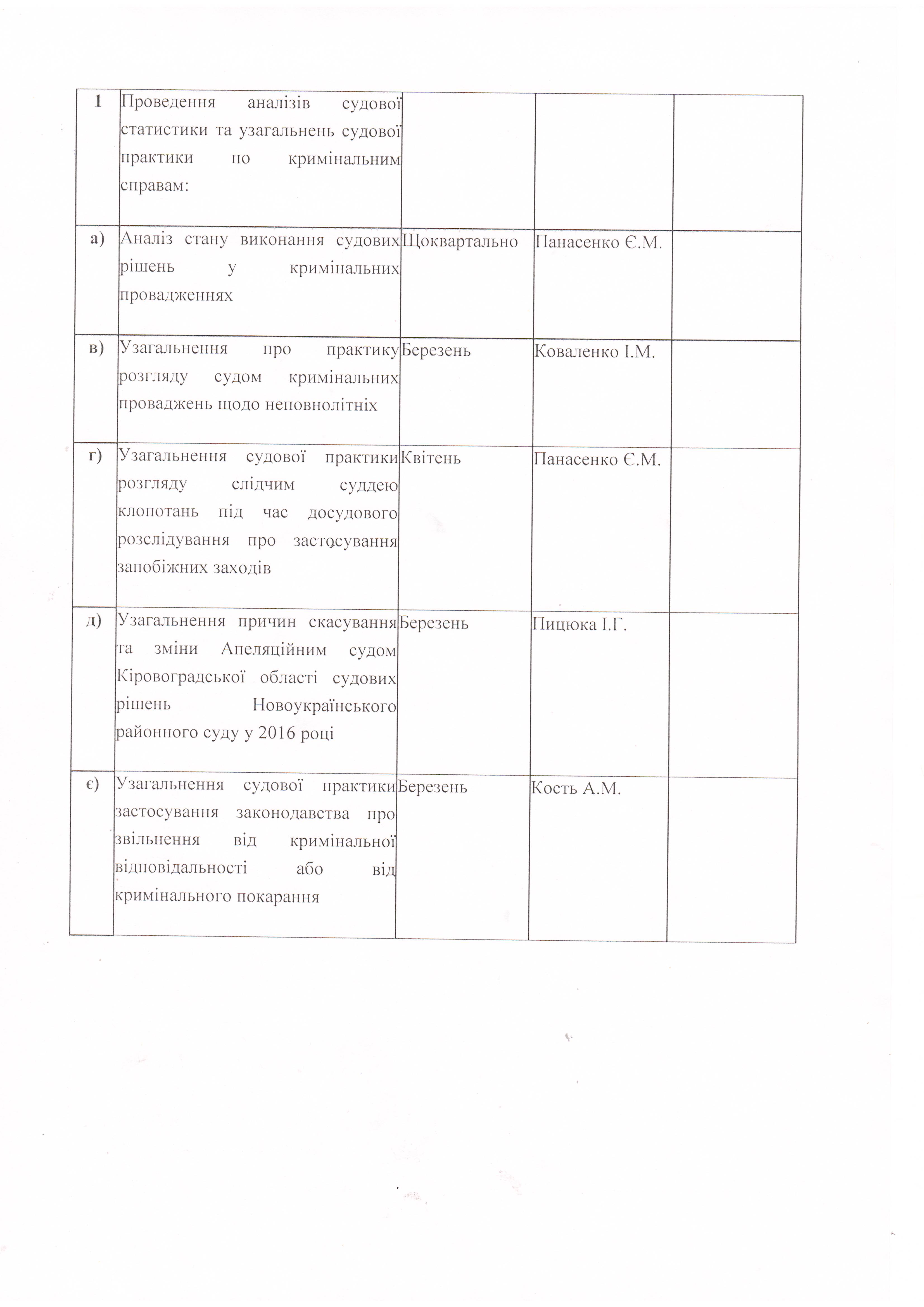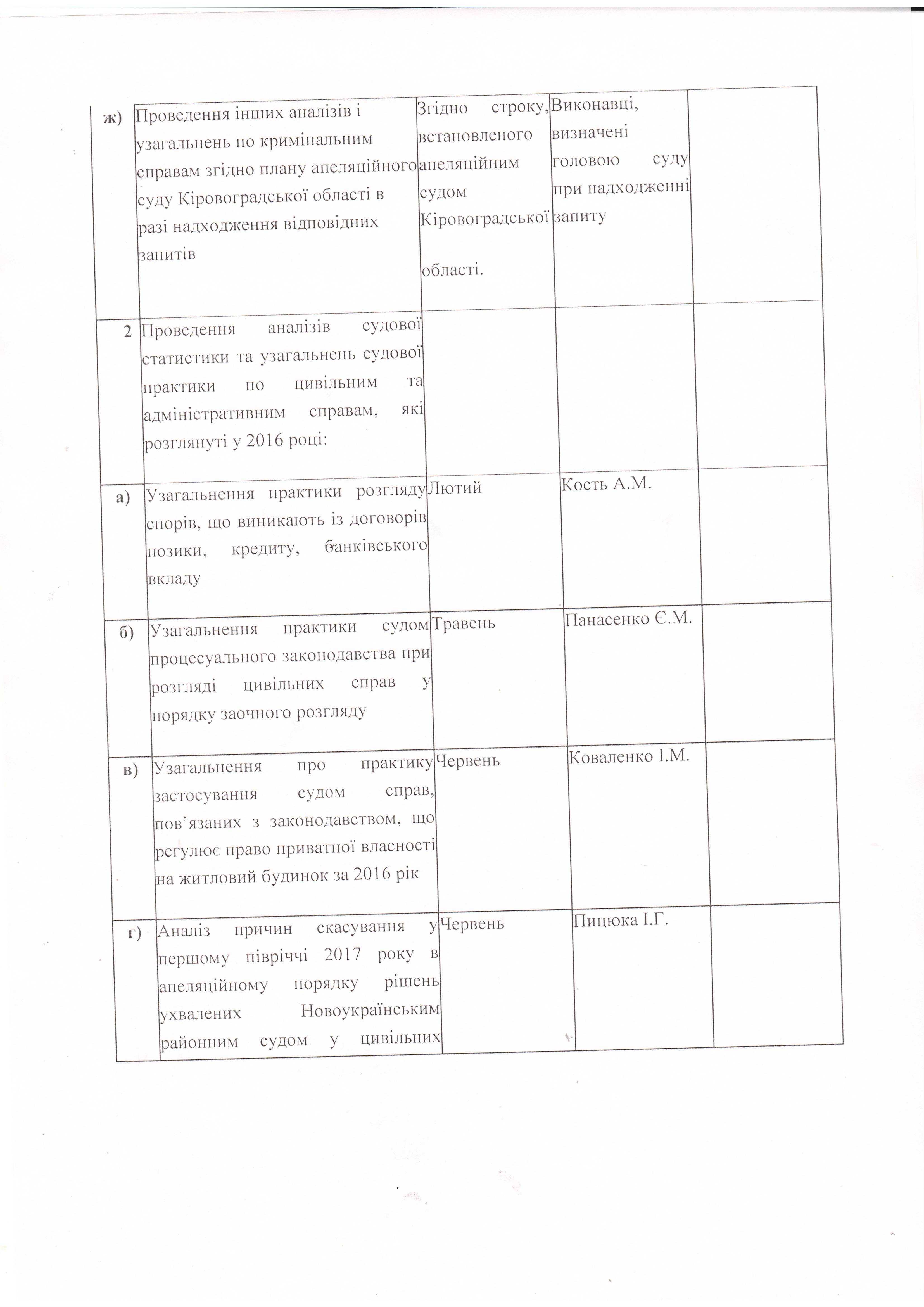 План роботи Новоукраїнського районного суду Кіровоградської області на перше півріччя 2017 року